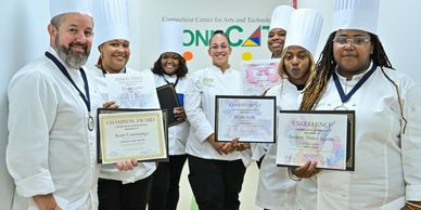 Shayne was a member of the second cohort of the ConnCAT Culinary Arts Academy. Upon graduation, he gained experience working in different roles across the restaurant industry, as well as with hotel brands and universities across the country. He was recently hired as an Assistant Culinary Chef Instructor in 2023, a role he had envisioned since his time as a student in 2017. Shayne attributes his success to the training and discipline he received while in the Culinary Program.